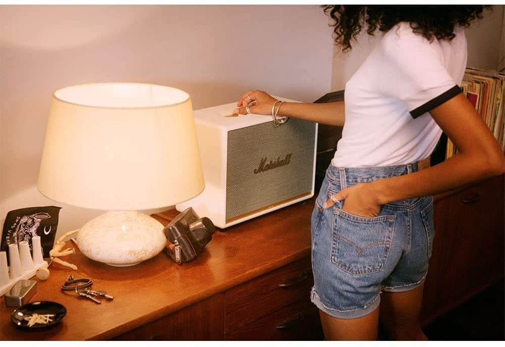 本体外面にはビニールレザーを採用し、テクスチャード加工のスピーカーグリルや象徴的なブランドロゴ、創業年が記された真鍮プレートなど、伝統的なディテールが引き継がれており、それはまさに往年のMarshallアンプの血統を体現するデザインとなっています。高級感と雰囲気のある外観は、お部屋のインテリアとしても独特な存在感を放ちます。
