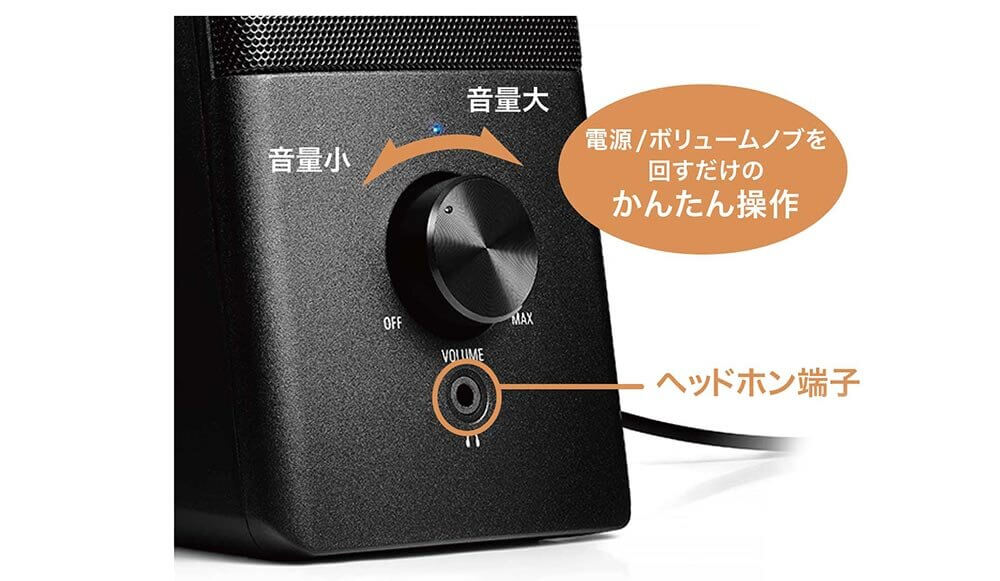 ヘッドホン端子・電源&ボリュームノブ搭載