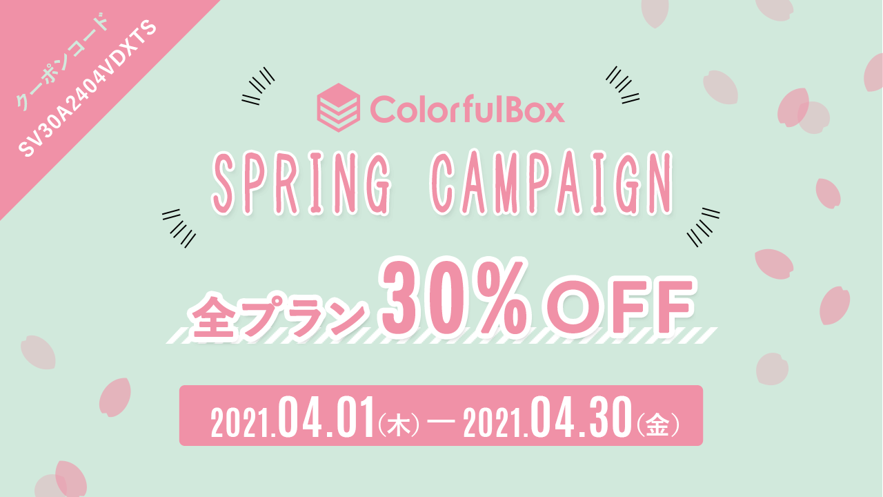高速レンタルサーバーで有名なカラフルボックスが、2021年4月30日までの期間限定で、サーバー料金30%オフとなるスプリングキャンペーンを開催しています。