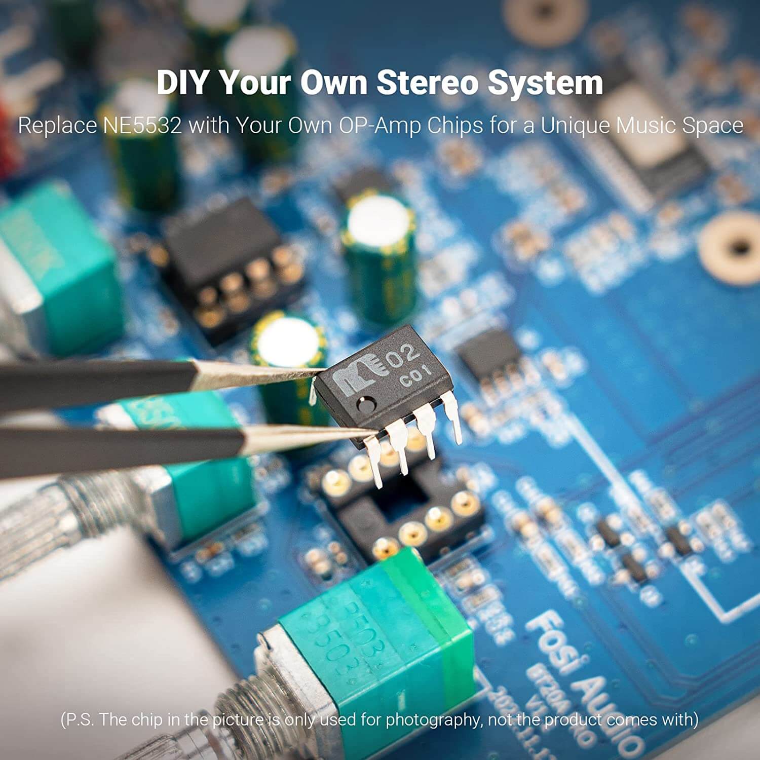 オペアンプチップにはNE5532を搭載しており、他のオペアンプ(LME49720HA、MUSES02、OPA2604AP、OPA2134PA、LM4562、NJM4556ADなど)との交換も可能です。