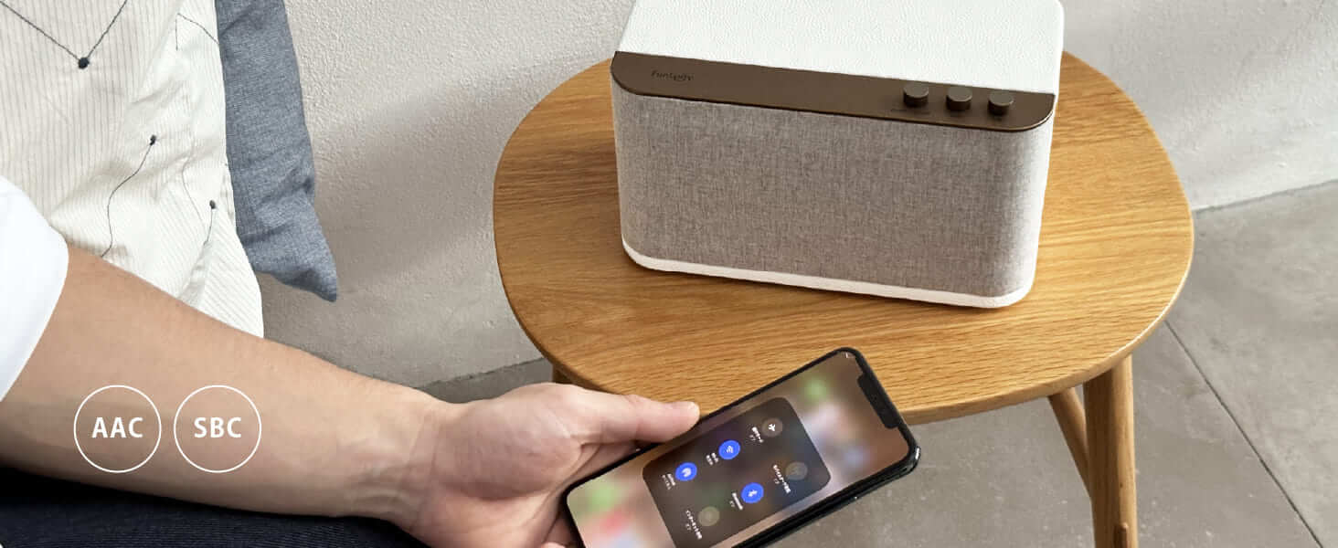 Bluetooth5.0に対応しており、スマホなどのデバイスと接続し、高速かつ安定したワイヤレス再生が可能となっています(最大通信距離10m)。