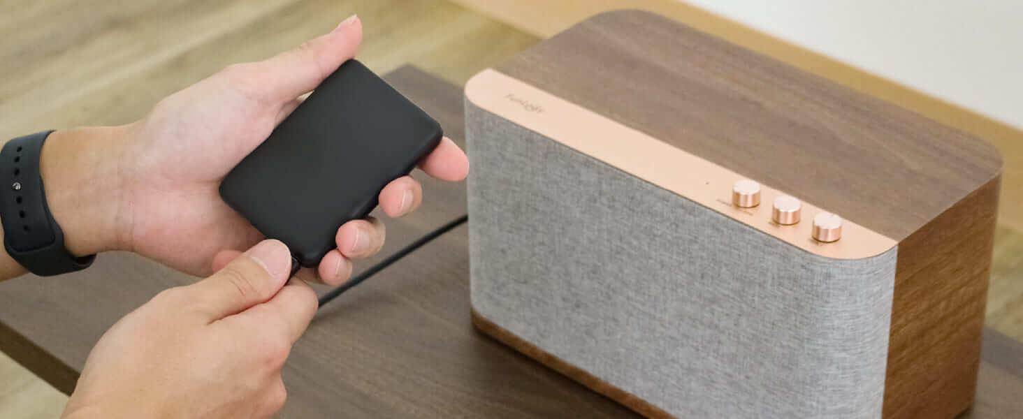 3.5mm AUX入力端子を搭載しており、有線での接続も可能となっています。