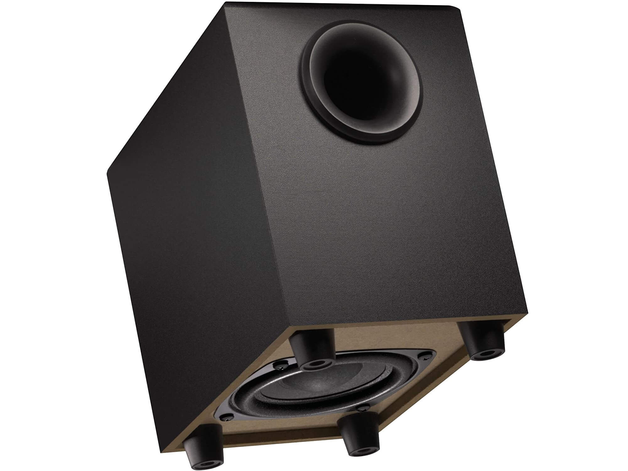 2つのサテライトスピーカーとダウンファイアリング方式(下向き設置)のサブウーファーによる、最大出力14W(RMS出力7W)のクリアで低音豊かな迫力のあるサウンドを再生します。3.5mm アナログ入力経由でPCなどのデバイスを接続し、コンパクトなボディサイズから、映画、音楽、ゲームなどを臨場感溢れるサウンドで楽しむことが出来ます。