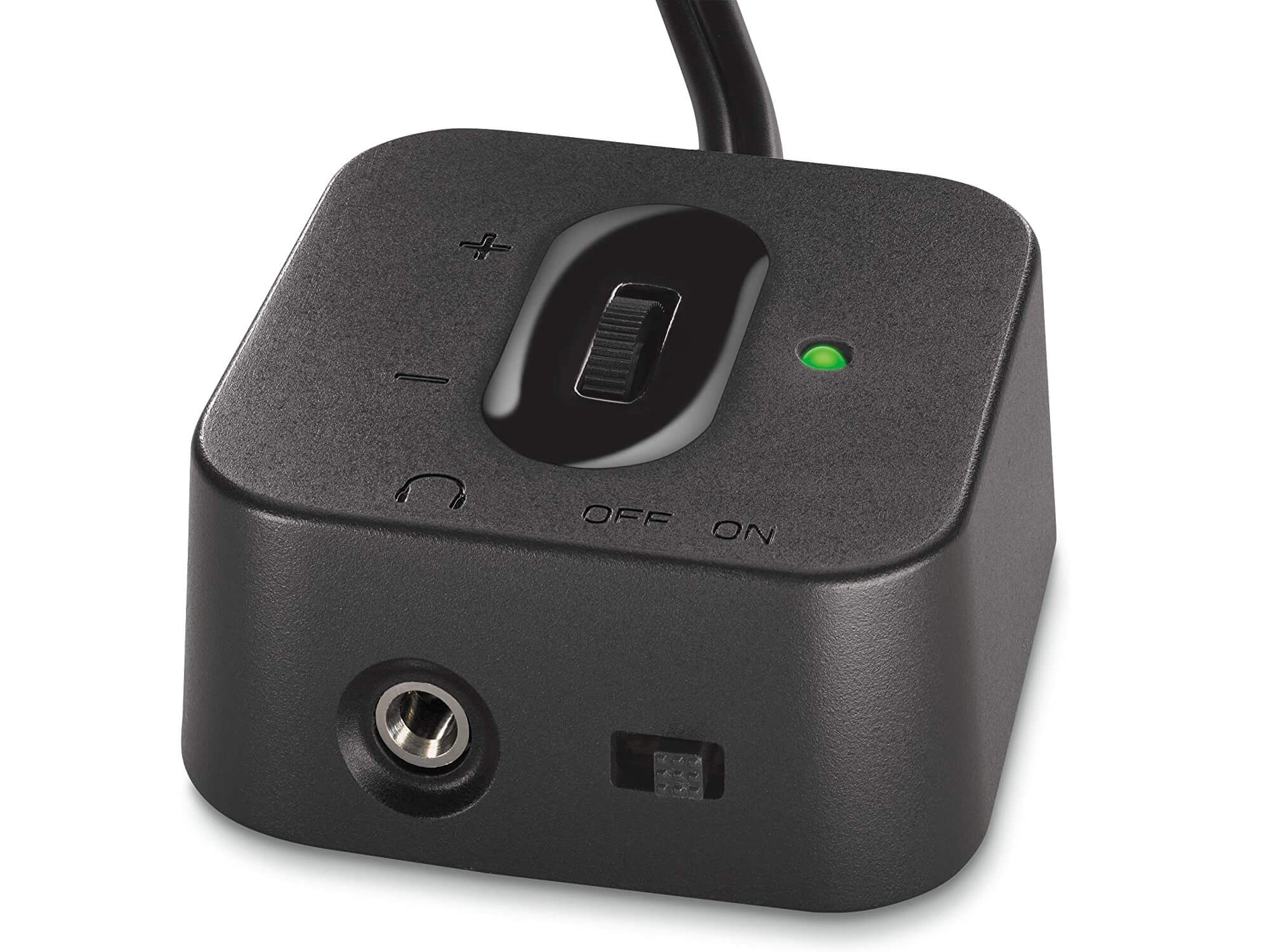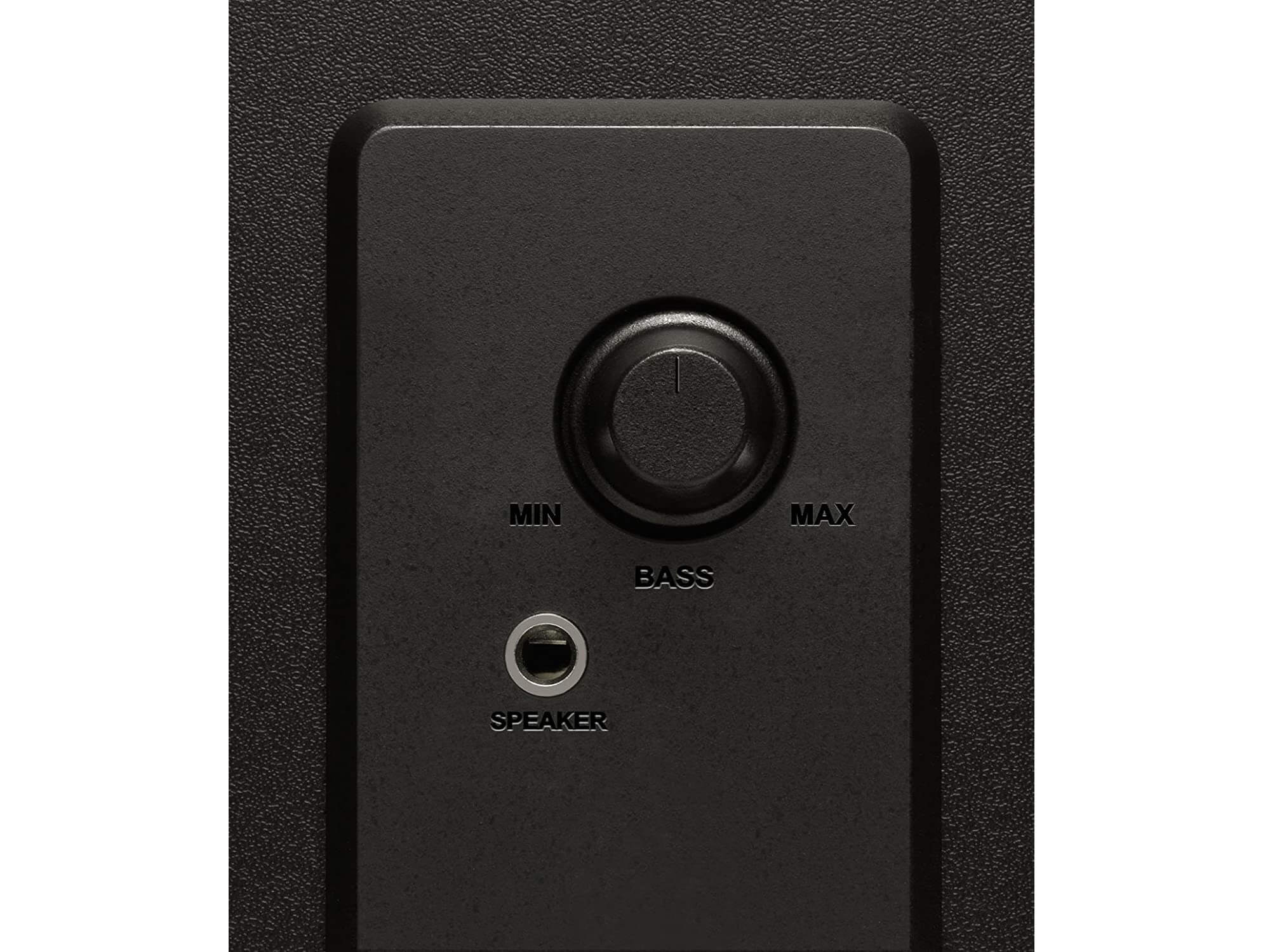 有線のコントロールポッドを付属しており、電源、音量およびヘッドフォンジャックに簡単にアクセスすることが出来ます。またサブウーファー背面には、低音調整のコントロールノブを搭載しており、お好みやジャンルに合わせて自由に調節することが可能です。