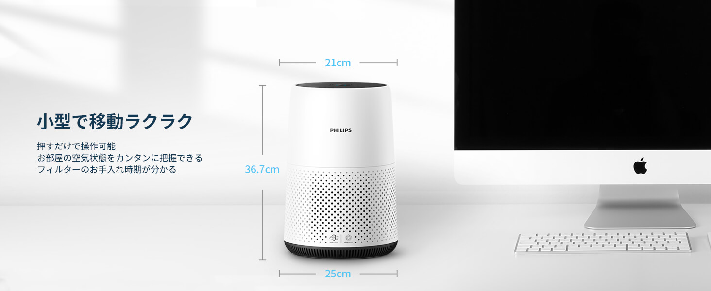 幅 25cm×高さ 36.7cm×奥行 25cm、重さ 2.3kgのコンパクトでシンプルなデザインは、置き場所を選ばず使用することが可能です。