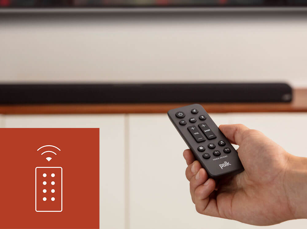 サウンドバーは高さが60mmに抑えられており、テレビの前に置いても画面やリモコン受光部を遮ることはありません。また、付属の壁掛け用テンプレートとスペーサーを使って、壁面に取り付けて使用することも可能です。ワイヤレスリモコンを付属しており、遠距離での操作もらくらく可能です。