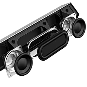 45mm フルレンジスピーカーユニットを2基、パッシブラジエーターを1基搭載しており、スリムなサイズながらトータル8W出力の、臨場感溢れる迫力のステレオサウンドを再生します。