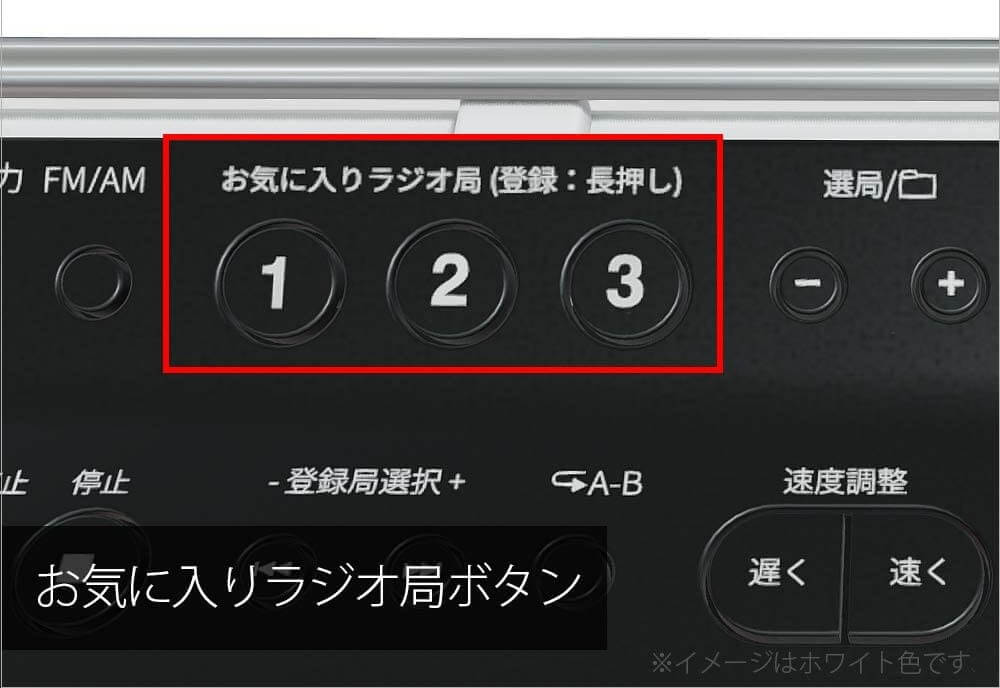 FM/AMチューナーを内蔵(ワイドFM対応)しており、ラジオ番組もクリアな音で楽しむことができます。お気に入りのラジオ番組を3つまで登録することができ、ボタン一つで選局可能です。