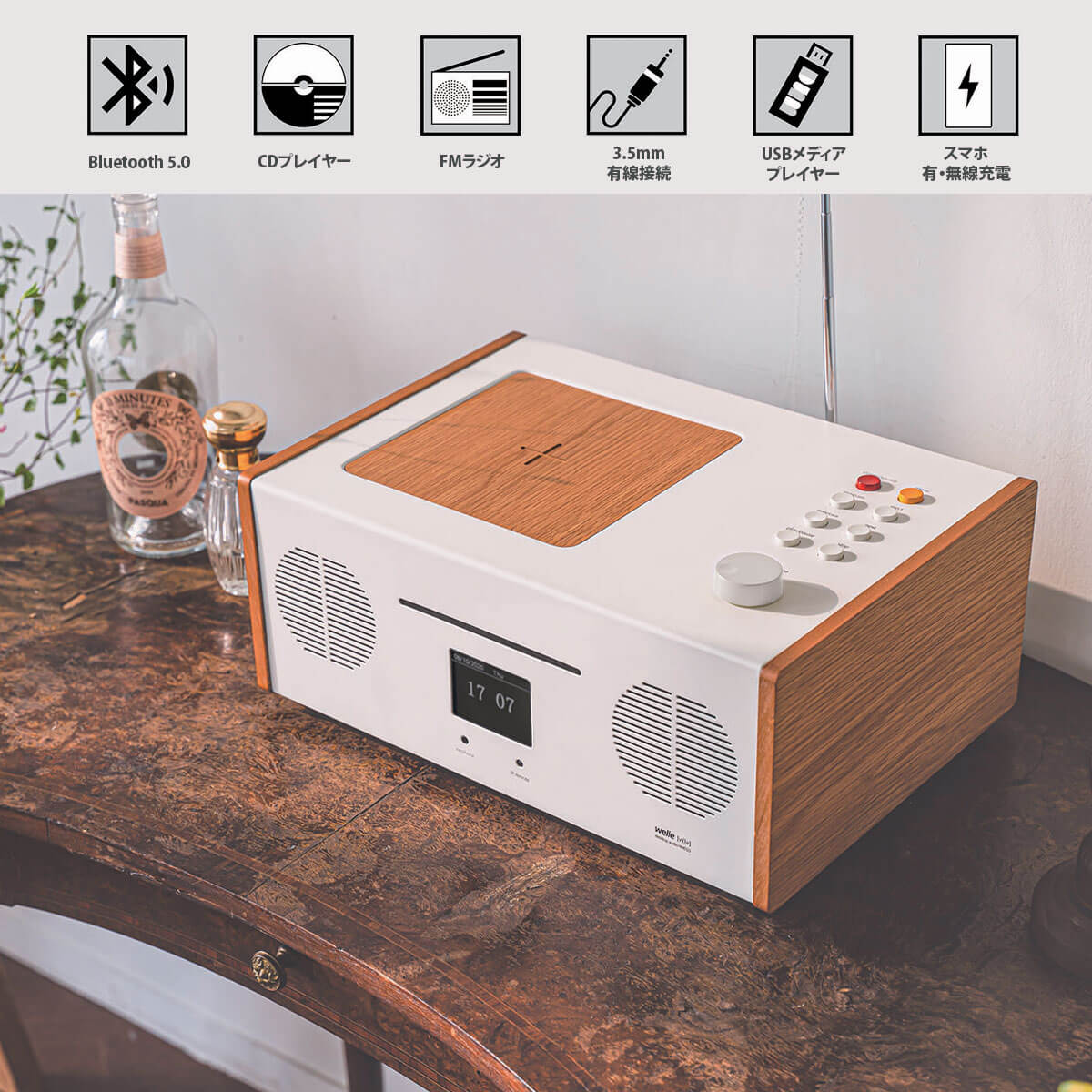 - スマホの無線/有線充電が可能な一体型コンポを探している方
